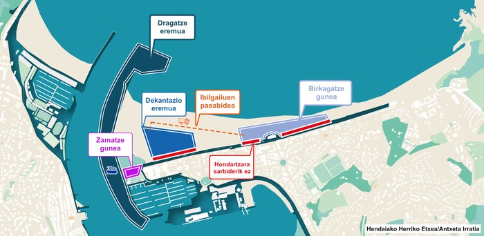 Tutu andana eta harez sortutako hiru putzu ikus daitezke azken asteotan Hendaiako hondartzan, Zokoburun. Azken hilabetean dragatzea burutzeko azpiegitura prestatzen aritu dira Itsas Charente departamenduko langileak eta Merceron enpresako beharginak, bi horiek eginen baitituzte heldu diren hiru hilabeteetan Bidasoaren itsasadarrari hondoa sakontzeko lanak.