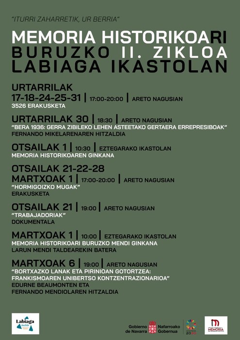 Aurten, 1936. urteko gerra eta bortxazko lanak izanen dituzte hizpide, eta hainbat hitzordu antolatu dituzte urtarriletik martxora bitarte.