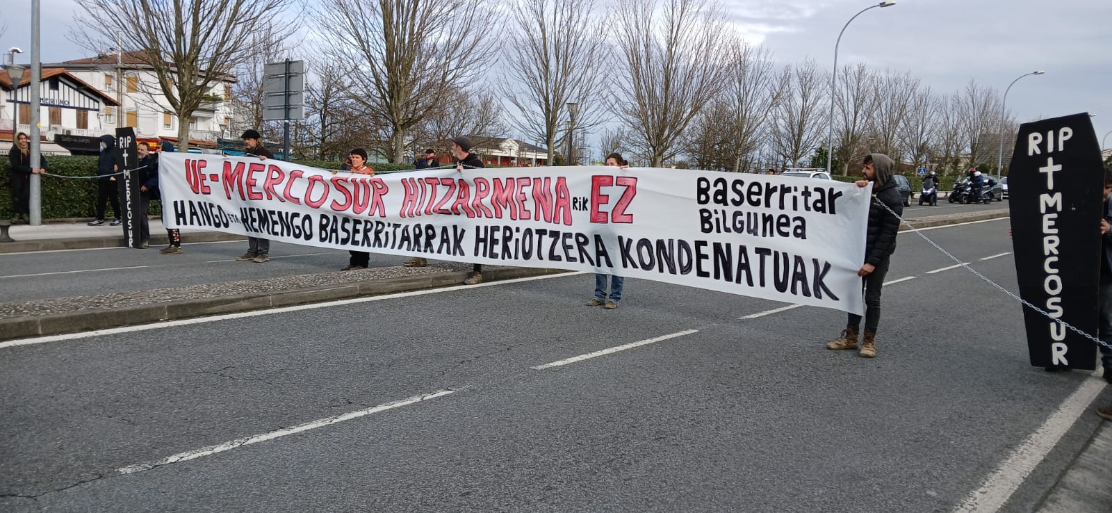 Ekintza hau Mercosur itunaren aurkako protesta egunaren barruan kokatzen da. Antolatzaileen arabera, itun horrek tokiko nekazaritzari eta elikadura burujabetzari kalte larriak eragin diezazkioke, ekoizpen industrialaren eta pestiziden erabileraren mesedetan. Horregatik, Lapurdi eta Gipuzkoa lotzen dituen Santiago zubia hautatu dute aldarrikapenerako gune sinboliko gisa.