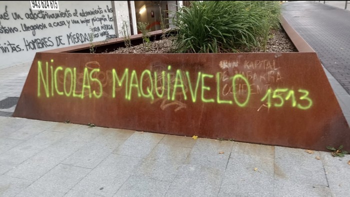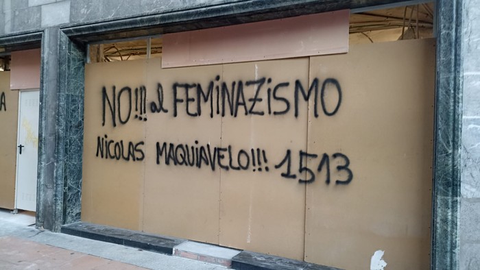 Irungo erdiguneko kaleak pintaketa homofoboz josita esnatu dira gaur, margo beltzez, gorriz, txuriz, hori kolore fosforitoz... Feminismoaren kontrako eraso zuzena egiten duten mezuak nonahi topa daitezke, Elitxu- Pio XII.etik hasi eta San Juan plazaraino. Komuna publikoen kanpoaldean, Fermin Calbetoneko autobus geltoki nagusian, eta erdiguneko etxebizitza zein establezimenduetako hormetan. Eskuin muturrak hedatutako "feminazi" kontzeptua behin eta berriro erabiliaz, eta Nikolas Makiavelok 1513 urtean idatziriko Printzea boterea kudeatzeko teoria politikoaren tratatuari aipuak eginez, feminismoaren kontrako eraso larria izan da honakoa. Mezuengatik, baina baita pintaketa kopurua eta erdigunean eman den moduagatik ere.