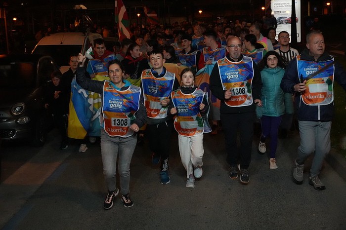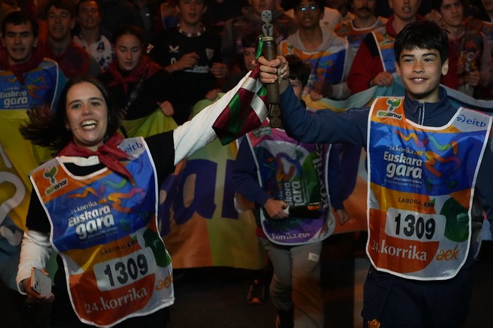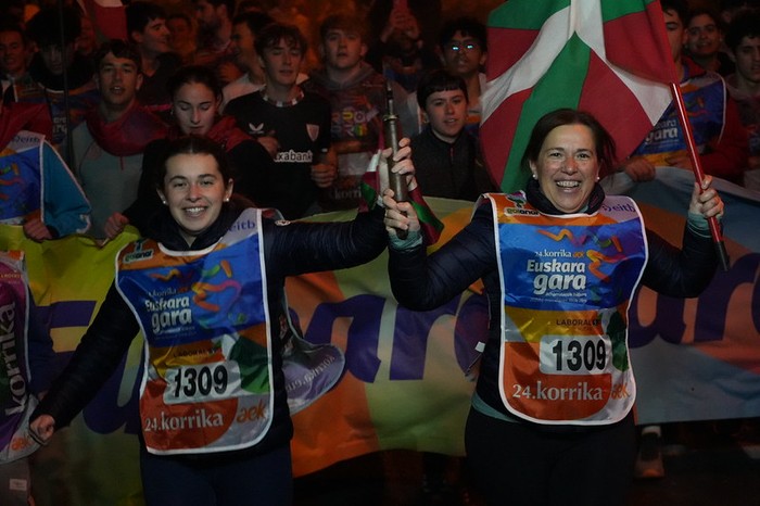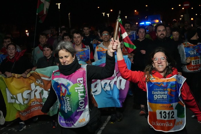 Euskarari lehen besarkada besterik ez da izan aurtengo Korrikan. Baina ordu eta erdiz Gurutze, Landetxa, Oinaurre, Elitxu, Larreaundi, Arbes, Behobia eta Bidasoa auzoak zeharkatu ditu 24. Korrikak Irunen, eta desordutan bada ere, goizean goiz ilusio biziz jaiki eta, euskararen alde hankak astinduz, bihotzak aldarriz betetzeko egunsenti ederra izan du Irungo hiriak. Animatu diren guztiek, ondoren gosaldu eta lanera, edo ikastetxera joango dira. Ohikoa baino gutxiago lo eginda, eta nekatuagoak beharbada. Baina Korrikak bakarrik eragiten dakien zirrarak auspotuta.
