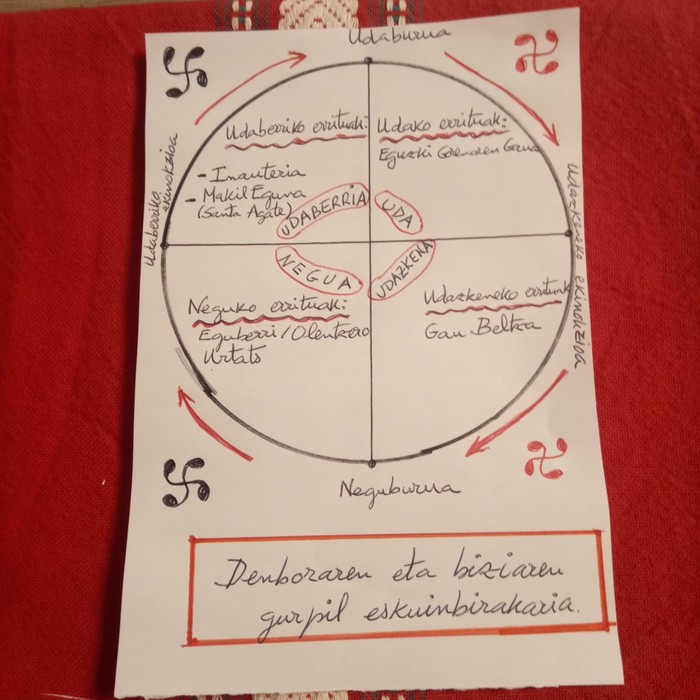 Lau sasoi edo urtaroak simetrikoak dira eta baita aurkariak ere. Negua eta uda alde batetik, eta udaberria eta udazkena bestetik; eta hori ongi islatzen da aro horietan egiten diren errituetan.